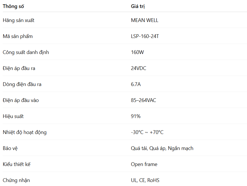 Nguồn MEAN WELL LSP-160-24T ( 160W 24V 6.7A)