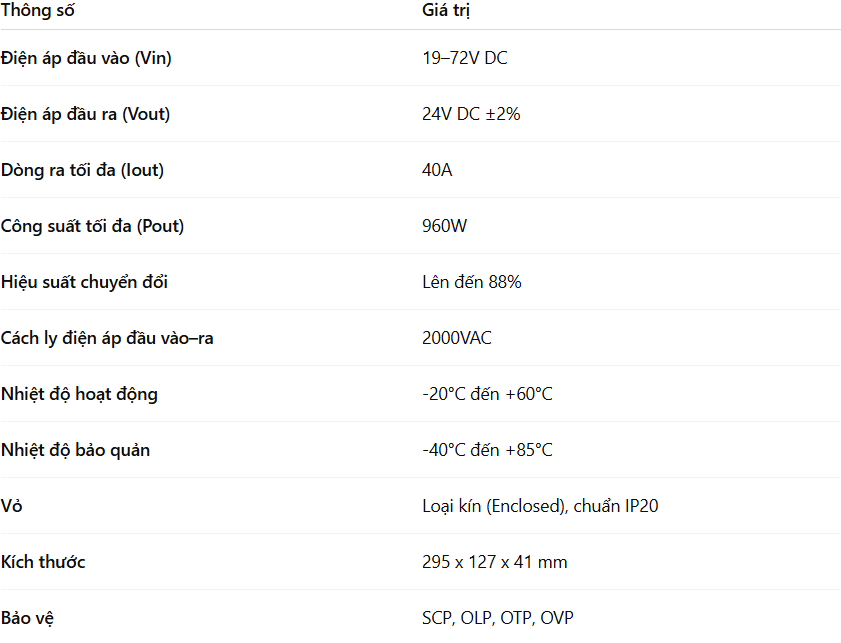 ✔ Điện áp ra: 24VDC (21.6~28.8V điều chỉnh)