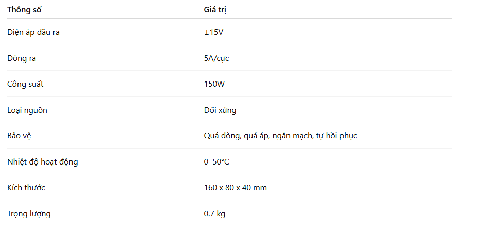 Nguồn ±15V và dòng 5A của HF55W‑D‑L không chỉ đơn thuần cung cấp điện năng mà còn đảm bảo tín hiệu cực kỳ ổn định và sạch, giúp các mạch analog, cảm biến, bộ khuếch đại, DAC/ADC và thiết bị đo lường hoạt động chuẩn xác, không nhiễu, giảm tối đa sai số.