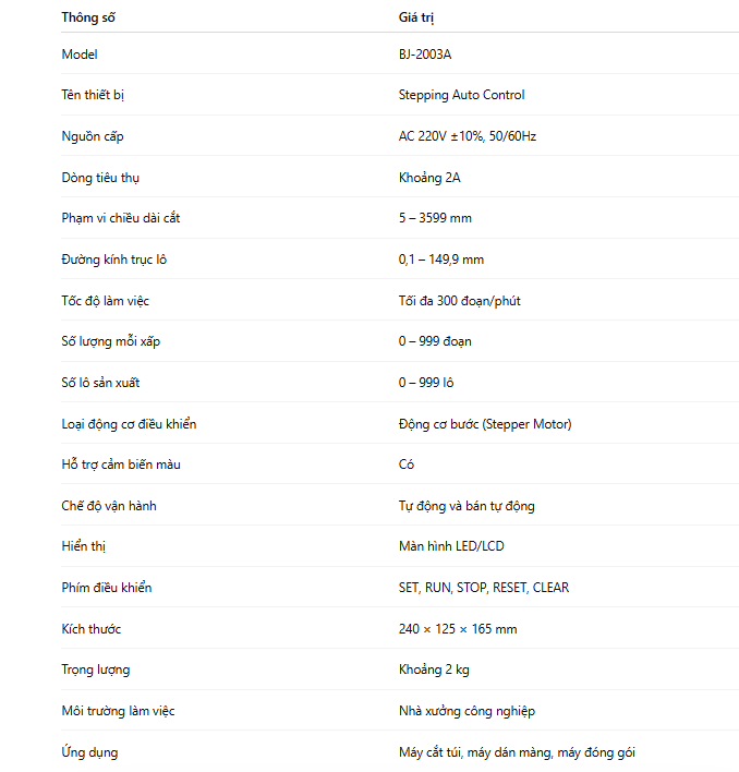 Trong các dây chuyền sản xuất bao bì hiện đại, máy cắt túi và máy dán màng đóng vai trò quan trọng trong việc tạo ra sản phẩm hoàn chỉnh. Để các thiết bị này hoạt động chính xác và ổn định, cần có một bộ điều khiển trung tâm có khả năng kiểm soát vị trí và chiều dài vật liệu. Bộ điều khiển BJ-2003A chính là thiết bị đảm nhiệm vai trò đó, góp phần nâng cao hiệu quả và chất lượng sản xuất.