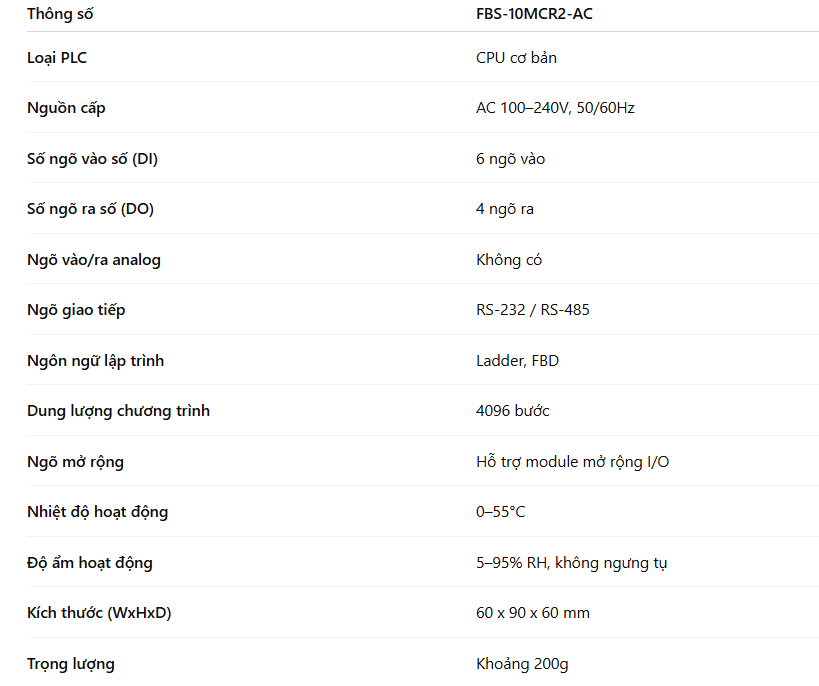 • Model: FBs-B2DA (B = Module mở rộng, 2 = 2 kênh, DA = Digital to Analog)