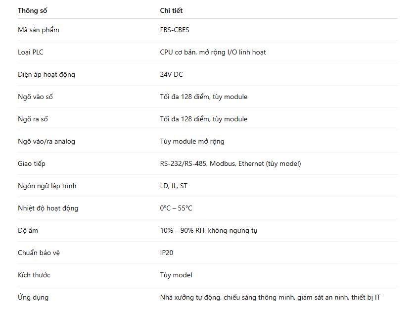 FBs-CBES là Module giao tiếp Ethernet thuộc series FBs của Fatek, được thiết kế để tích hợp vào các PLC Fatek nhằm cung cấp khả năng kết nối mạng Ethernet, cho phép giám sát, điều khiển và truyền dữ liệu công nghiệp qua giao thức chuẩn.