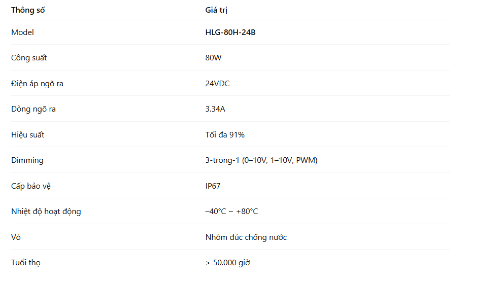 Đây chính là lý do các đơn vị thi công thường ưu tiên chọn HLG-80H-24B thay vì các nguồn giá rẻ, bởi tính ổn định lâu dài quyết định đến tuổi thọ toàn hệ thống.