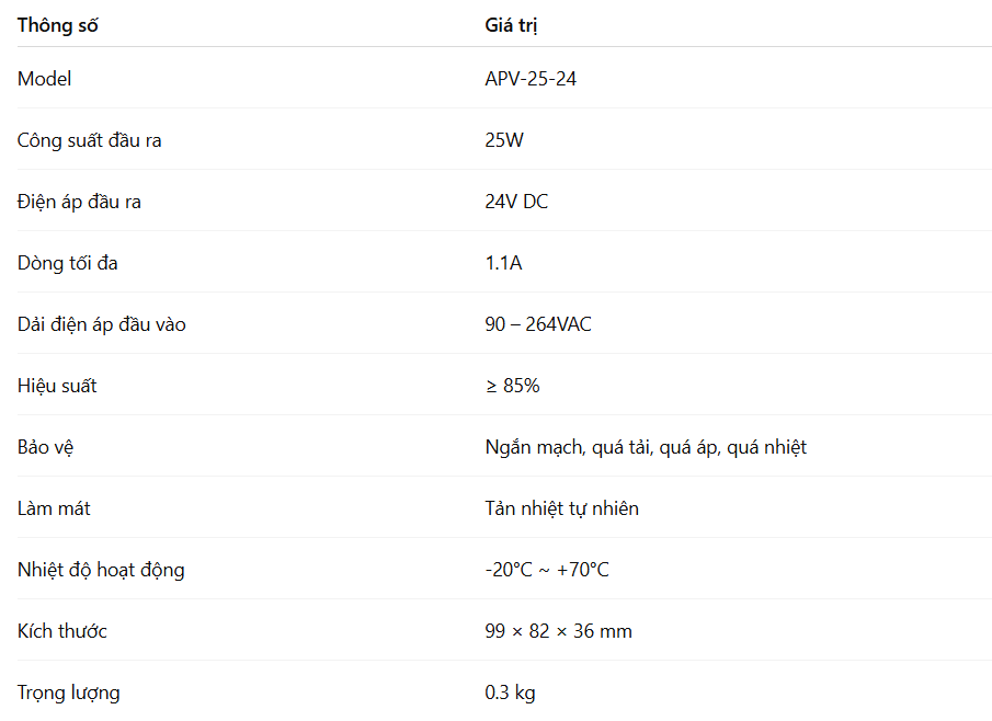 Nguồn MEAN WELL APV-25-24 ( 25W 24V 1.1A)