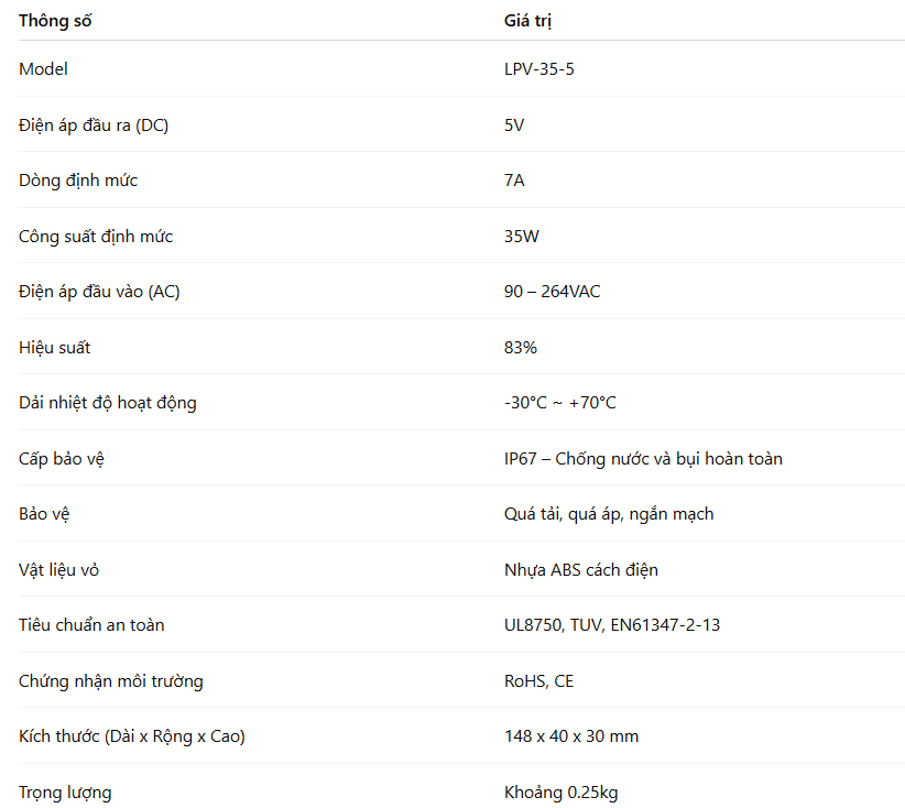 Nguồn MEAN WELL LPV-35-5 (35W 5V 7A)