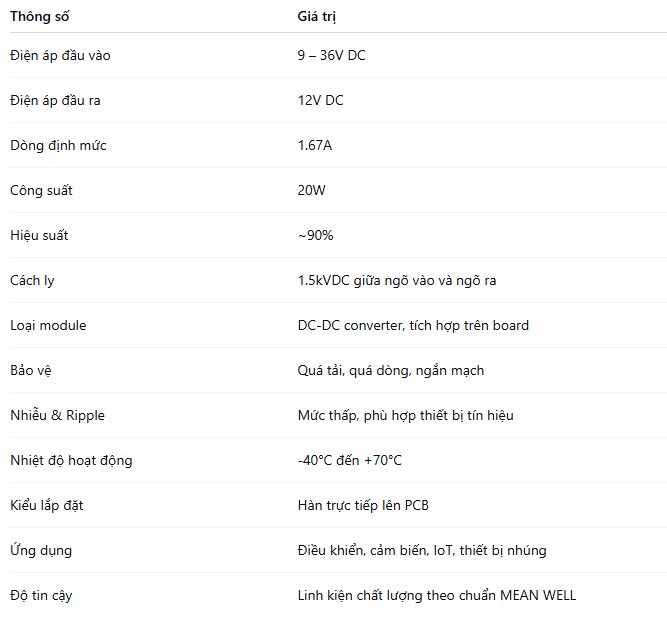 Nguồn MEAN WELL Tích Hợp Trên Board RSDW20F-12
