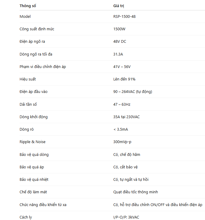GIÁ TRỊ CỐT LÕI CỦA MEAN WELL RSP-1500-48 (MỞ RỘNG)