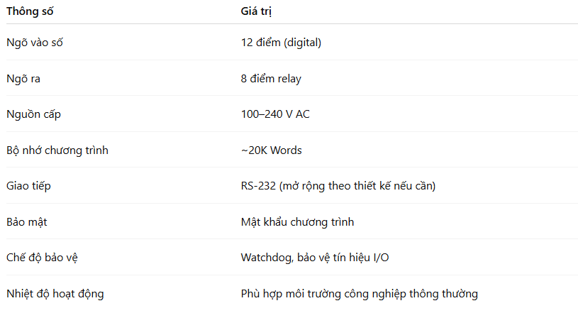 – Cấu hình I/O phù hợp để thiết kế bài thực hành điều khiển cơ bản.