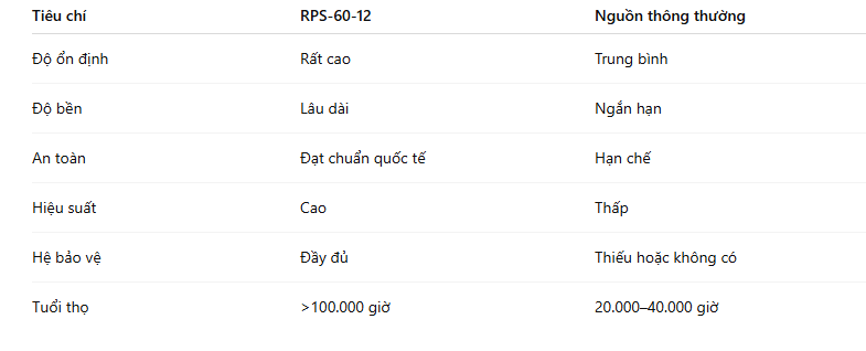 So Sánh RPS-60-12 Với Bộ Nguồn Phổ Thông